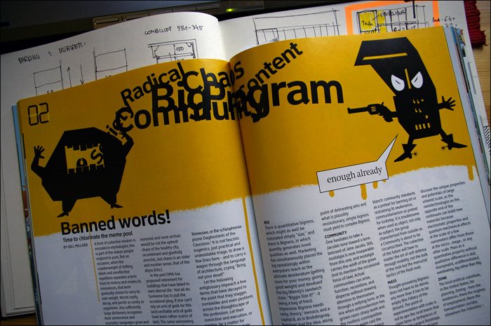 inspiracji dyplomowych ciąg dalszy, tym razem od Remka. Po wczorajszym filmie w csw, wróciłam do książki "Content" i jak zwykle, sporo się śmiałam ;) walczące budynki w butach kowbojskich, wieżowiec z biustem i telefon komórkowy z pułapki na myszy...